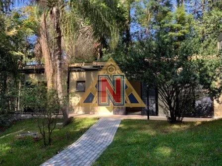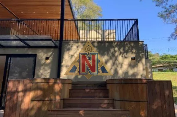 Esta propriedade singular dispõe de quatro edificações distribuídas em um terreno espaçoso. A casa principal possui dois pavimentos, enquanto a edícula está geminada ao home office. Além disso, há uma oficina/deposito com banheiro de serviço situado abaixo das caixas d'água e uma garagem coberta. A área privativa é de 405m², excluindo a garagem coberta de 50m² com capacidade para até quatro veículos, além de duas vagas descobertas. A distribuição dos ambientes é a seguinte: