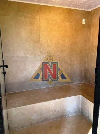 - Deck com dois ofurôs de madeira, sauna úmida e banheiro/vestiário completo.