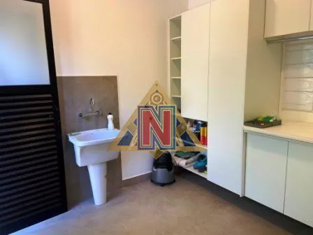- Área de serviços completa com armários sob medida, espaço para lavadora e secadora, e acesso pela cozinha e garagem.