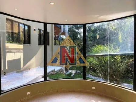 - Esquadrias em alumínio preto fosco com vidros temperados.